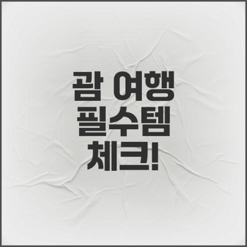괌 여행을 계획하고 있다면, 여행 전 반드시 준비해야 할 필수 아이템들이 있습니다. 이 글에서는 괌 여행을 위한 필수 준비물을 철저히 정리해 드리겠습니다. 처음 방문하는 분들도 걱정 없이 즐길 수 있도록 체크리스트를 준비해 보세요!